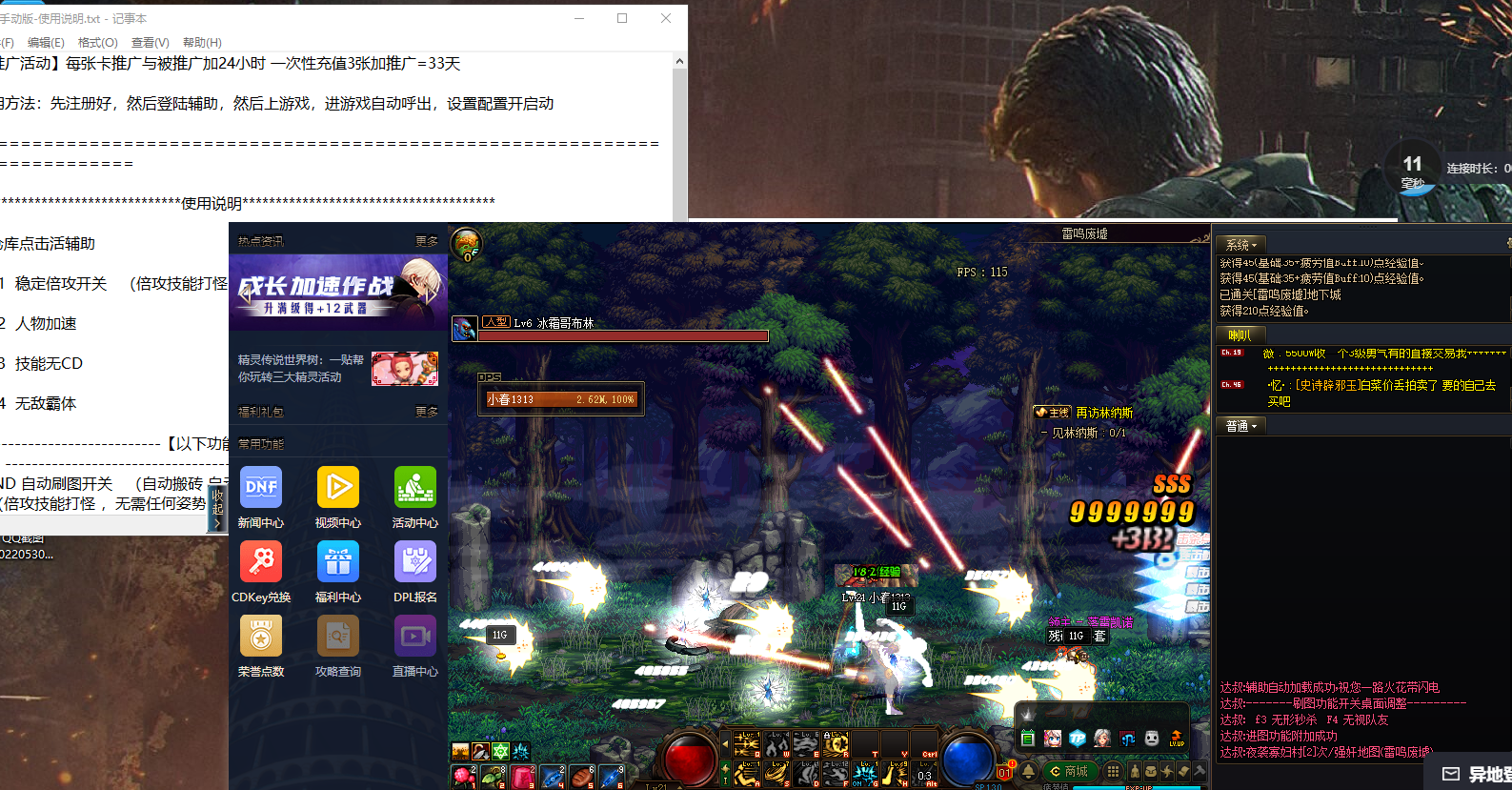破解成功后 输入卡号密码窗口会消失上游戏就行了  聊天栏会弹出辅助菜单