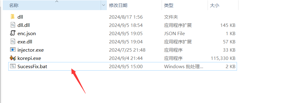 5.若卡在这一直不动,出现卡sucess的把这个文件"SucessFix.bat"丢到目录下 运行下,再运行injector.exe即可