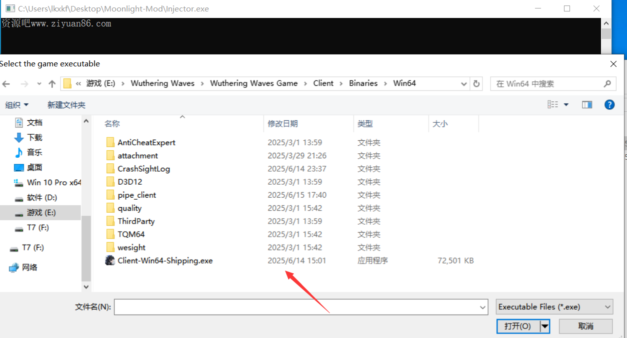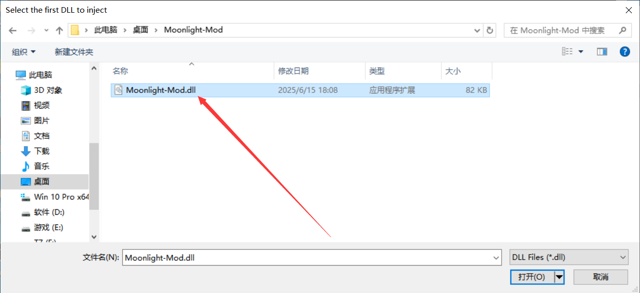 以管理员方式运行Injector.exe1.第一个弹窗让你选择游戏路径2.第二个弹窗选择“Moonlight-Mod.dll”的路径无菜单,功能是默认打开的,不可关闭