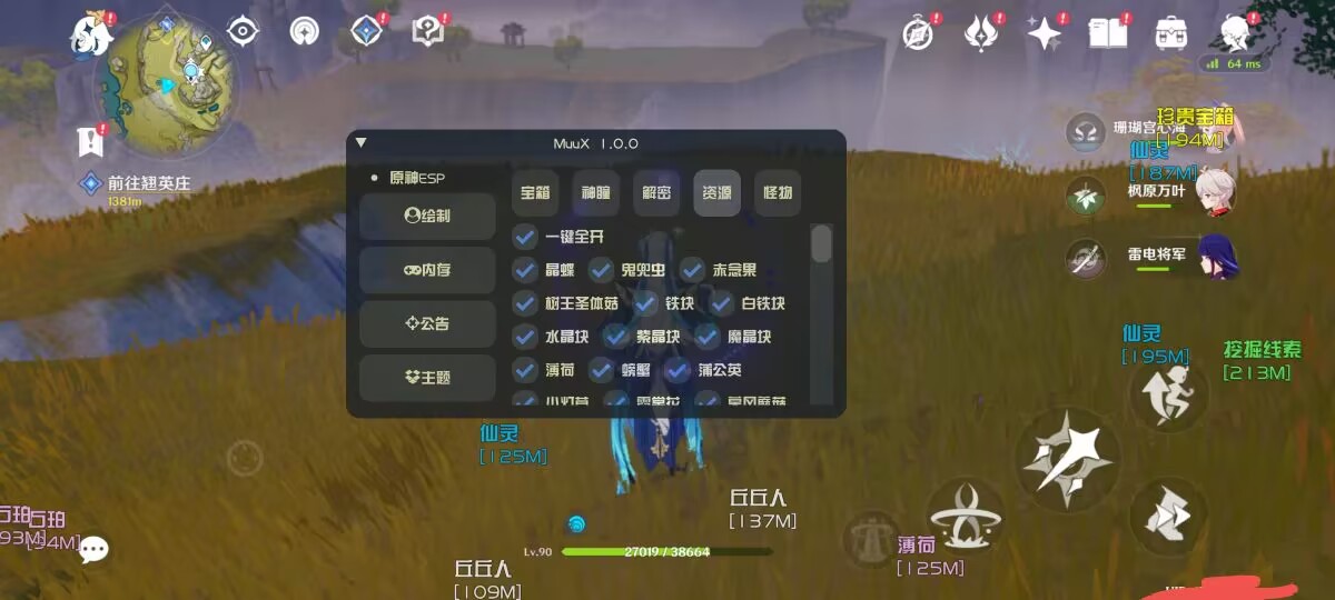 传送神童-自动解密-宝箱传送-资源传送-千刀-绘制-无限体力-范围拾取-无限滑翔-平地起飞-加速-笨怪-无敌-傻怪自杀-无cd