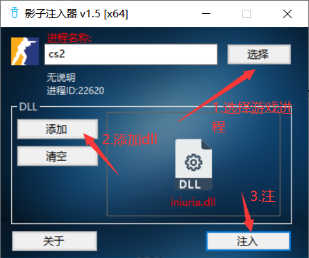 @wEkNGxcA:管理员方式打开注入器,选择正确的进程