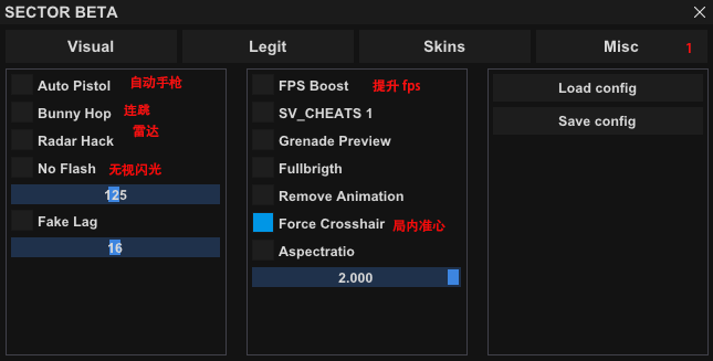 CSGO-SECTOR免费精简辅助演技换肤杂项视觉