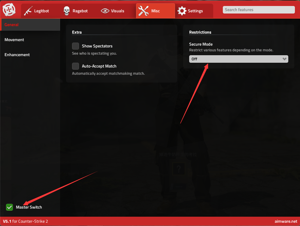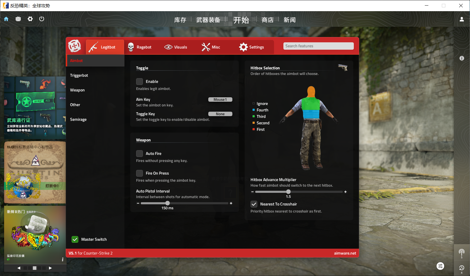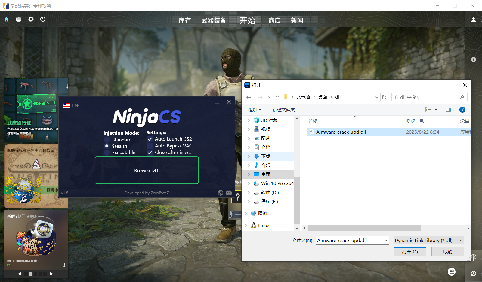 下载一个注入器,如:https://www.fuzhu86.net/csgo/1097.html不推荐使用影子注入器,有群友使用影子注入器后,完美平台一直检测有残留1.启动游戏2.管理员方式运行NinjaCS_v1.8.exe注入器,单击“Browse DLL”选择DLL路径,并点击“Proceed”3.注入器会重启游戏并注入DLL4.等待十几秒左右,按insert开启菜单5.在Misc中把安全模式设置为off,即可开启暴力功能