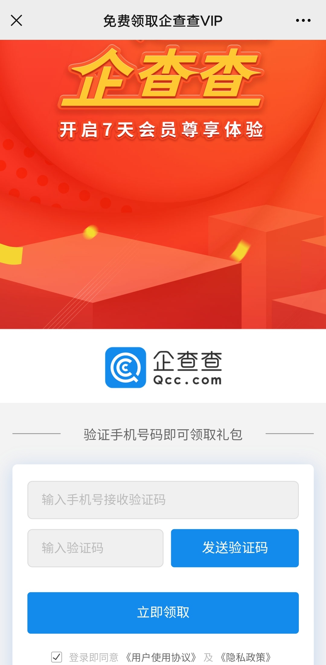 免费领7天企查查VIP会员秒到 查企业信用报告