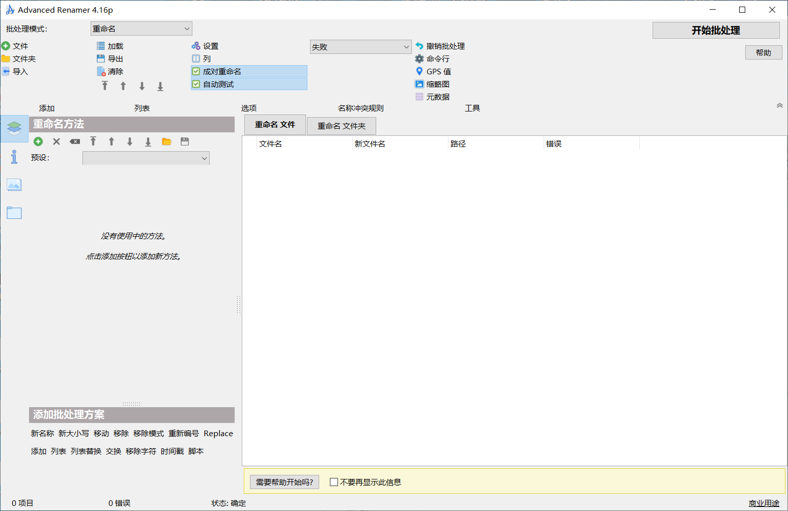 这是一个批量修改文件名的软件,它能够快速方便地对文件或文件夹进行修改名称,并且可以批量修改。你可以在Advanced Renamer的命名方案列表中添加方案,有新名称、新写法、移动、移除、移除样式、Renumber、替换、添加、列表、属性、时间戳等多种方案供你选择!