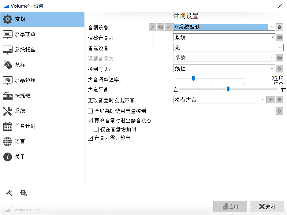 这是一款改善电脑使用体验软件Volume2 ,它能让你在调节电脑音量的时候更加顺手。你可以通过鼠标在屏幕边框上操作即可轻松更改音量,不需要快捷键,不需要退回到桌面,单手就能完成操作。还能更改音量调节悬浮框的皮肤,自定义热键,甚至定时任务等等。软件绿色无广告,不写注册表体积小巧,可完全替代 Windows 默认音量控件。