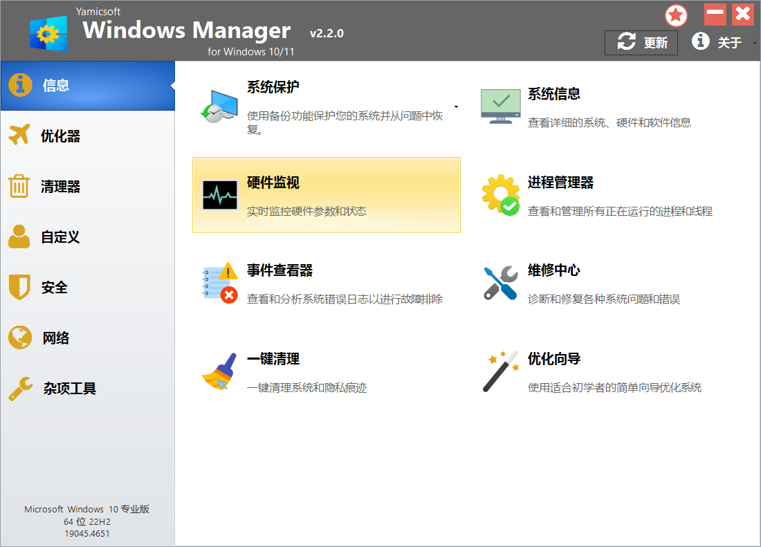 Windows Manager中文破解版(Win11优化大师)是一款集Windows10/11所有功能于一身的Win10/11系统优化工具,这款系统优化软件提供40多个实用程序来优化,调整,清理,加速和修复Windows 10/11,可以让系统运行流畅,解决系统故障,提高稳定性和安全性,个性化Windows 10/11,满足系统优化调整所有要求.