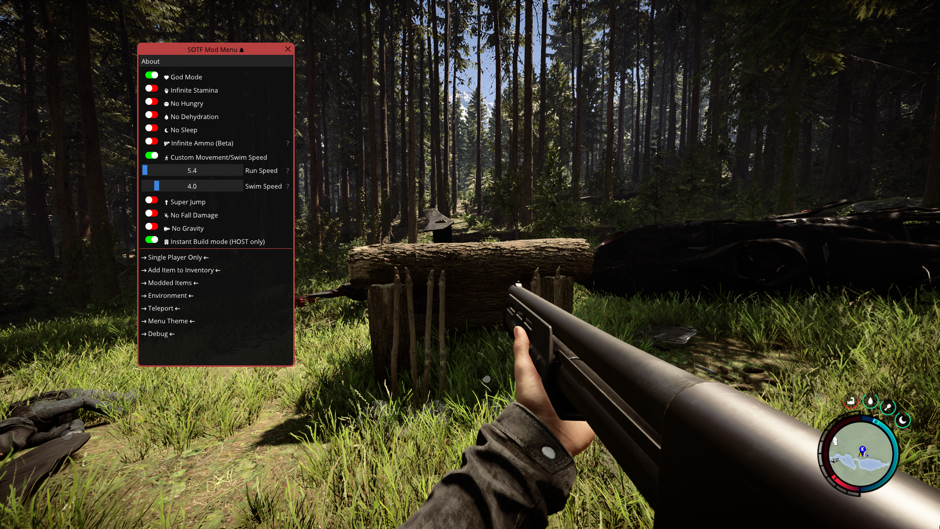 功能列表:无敌模式无限耐力无饥饿无饥渴无需睡眠无限弹药(测试)自定义移动/游泳速度超级跳无坠落伤害没有重力快速建造模式传送交互式传送地图显示玩家位置增加物品到库存更改Mod菜单颜色主题自定义悬挂式滑翔机自定义骑士自定义手枪自定义手电筒自定义打火机自定义氧气呼吸器自定义绳枪太阳控制风控制时间控制