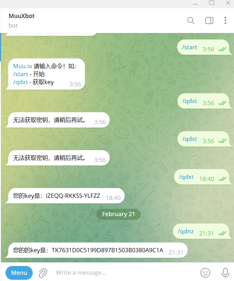 微范围-安全稳定-不懂的就进一次人机打一下就知道了更新日志:新增透视 优化卡屏不能用TG免费获取卡密,需要翻墙https://t.me/Muuprobot TG机器人免费自动获取,比之前网页方便且安全,不存在重复使用卡密,需要挂梯子