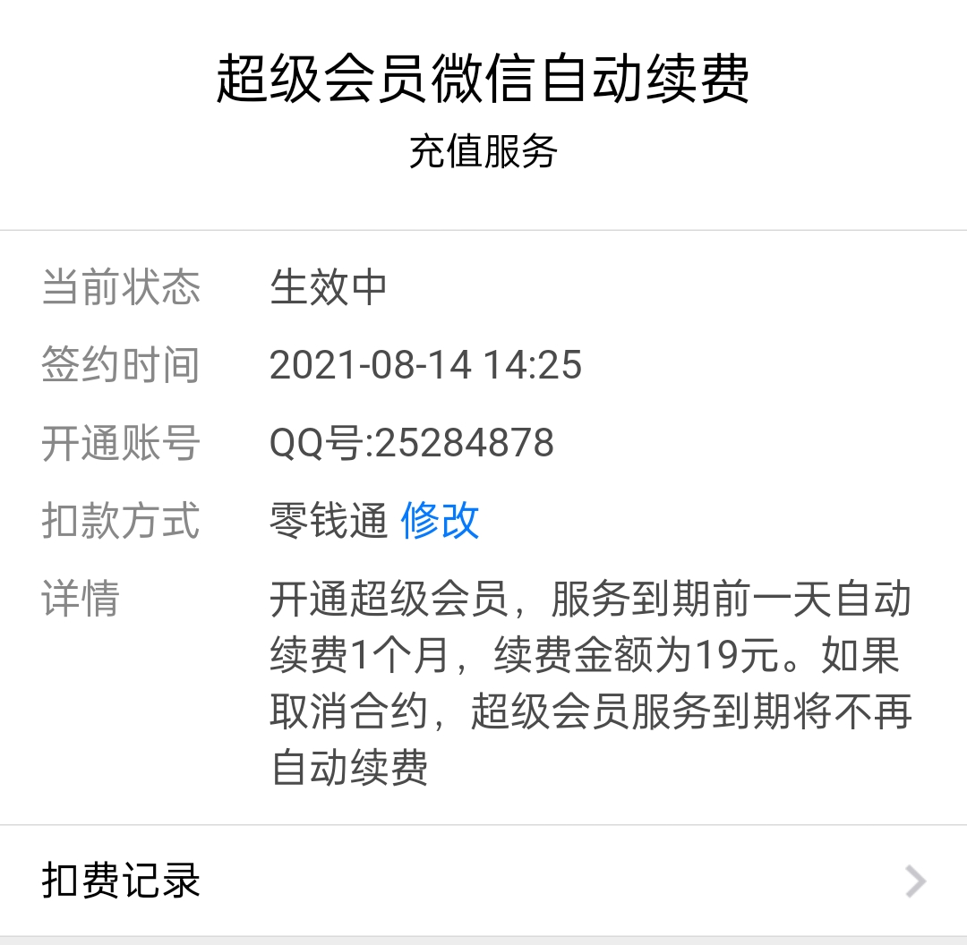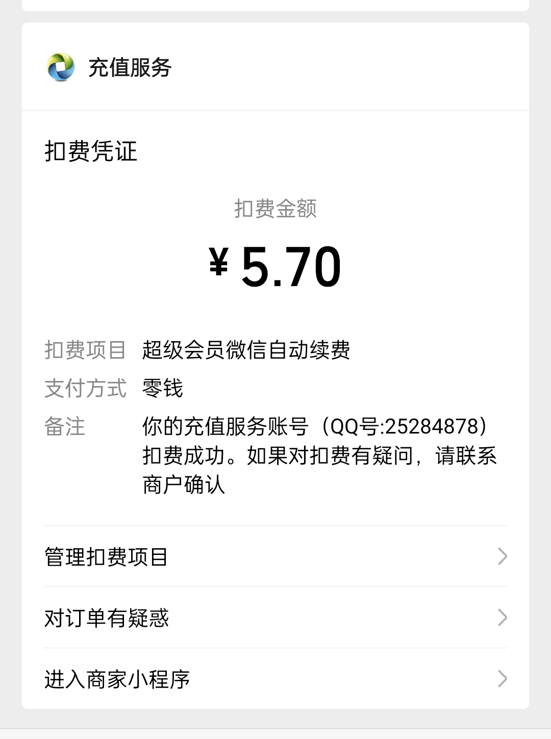 3、小编自己亲测5.7元开通一个月超级会员 秒到账 成功后返回微信去取消自动续费 就可以了