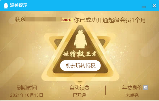 | https://pay.qq.com/h5/index.shtml?m=buy&as=1&n=1&cmn=1&continousmonth=1&continuous_month_type=&sdkpay=1&c=&aid=mvip.pingtai.vipsite.svip&productid=&groupid=MD210603215021450&mpid=&service_name=%E8%B6%85%E7%BA%A7%E4%BC%9A%E5%91%98&service=BASES&appid=1450022370&client=wechat&u=11111111(你自己的QQ账号) |